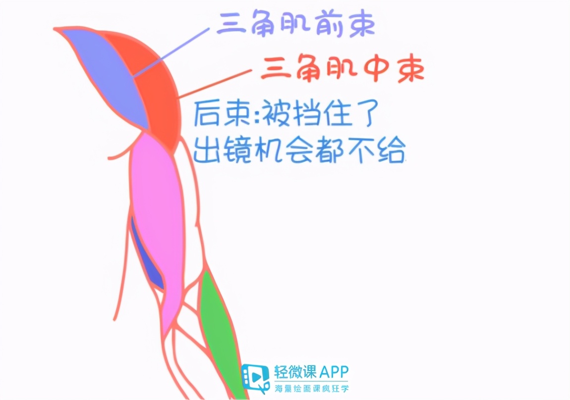 三角肌包裹着锁骨肩胛骨与肱骨还分为前束、中束和后束