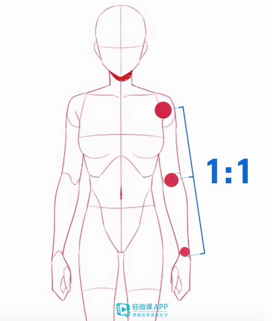 画手了解手臂的比例是能否画好的第一步,通过与身体比例参考就可以画出比例正常的手臂。
