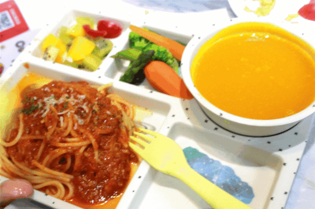 玩的差不多啦!准备开吃吧~意面儿童餐同样营养丰富,用的都是澳洲进口环保餐具,卫生方面是可以放心!新鲜现制的肉酱加上口味清淡不油腻的意面,在来点新鲜蔬果,营养配比简直完美!
