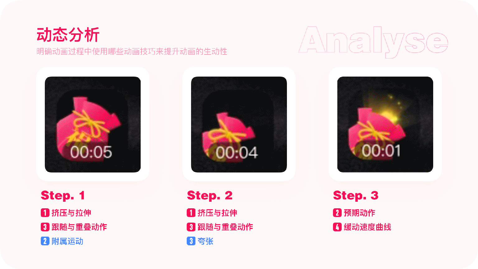 第一部分设计技巧是增添动画细节的方法,可以用这些原则让动画更有细节更生动。