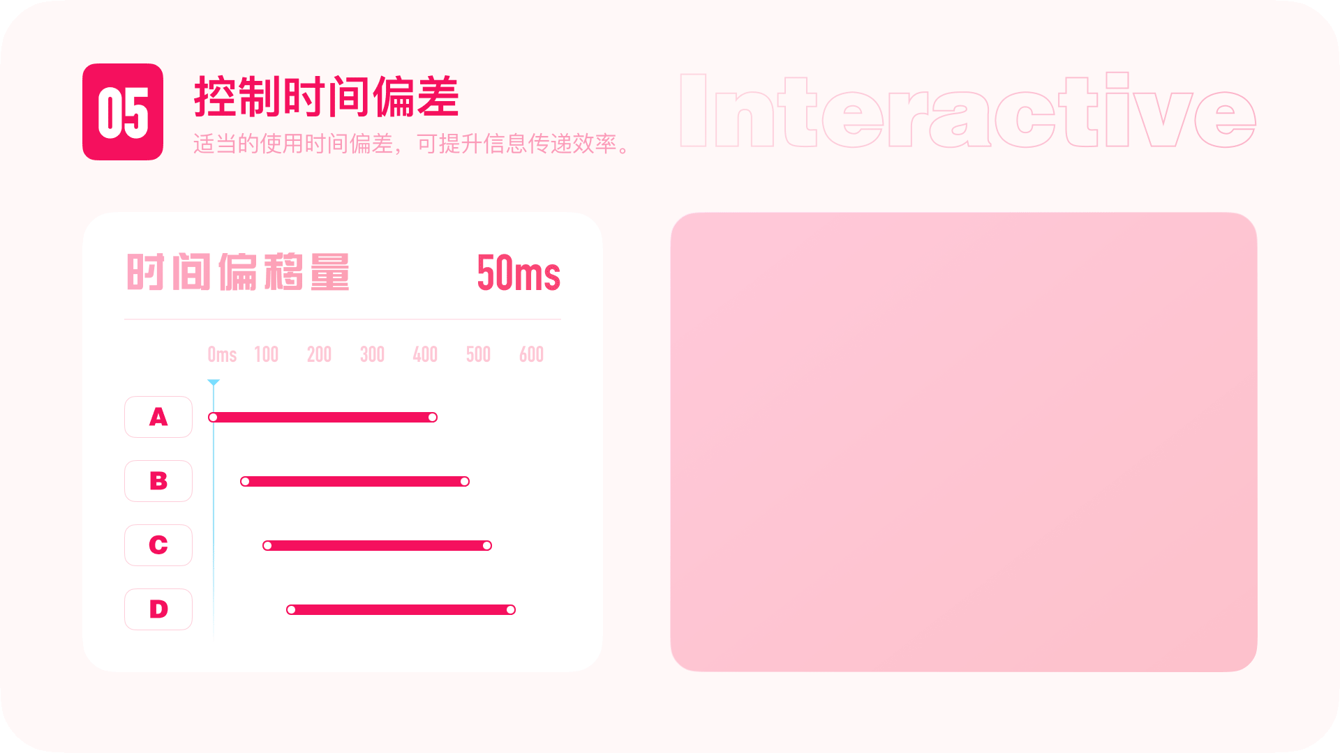 【控制时间偏差】运动物体的主要运动和附属运动不会同时发生,用时间偏差,会让动画更加真实自然。也可避免动效过程出现空档期,或者一次性出现过多的元素,增加认知负荷。信息离场时则需要快速高效,不需要人为的制造信息偏差。