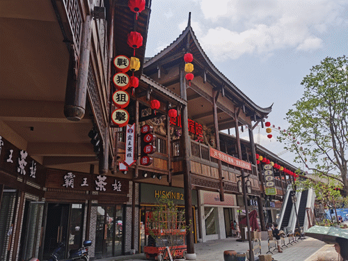 即使时间极度紧张,效果也不能打折扣,为了丰富游逛趣味性,移步换景,给游客消费者带去惊喜、期待的体验,我们还做了一店一景一店一品的设计,为将近100个商家进行形态各异的单独门面设计。