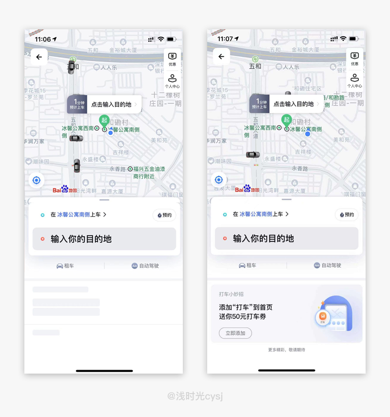作为一款出行辅助工具软件,除了要考虑到出行的主体功能之外,还需要考虑与出行相关的一些信息,比如天气恶劣,去地铁站或公交站较远,我们通常会选择打车。