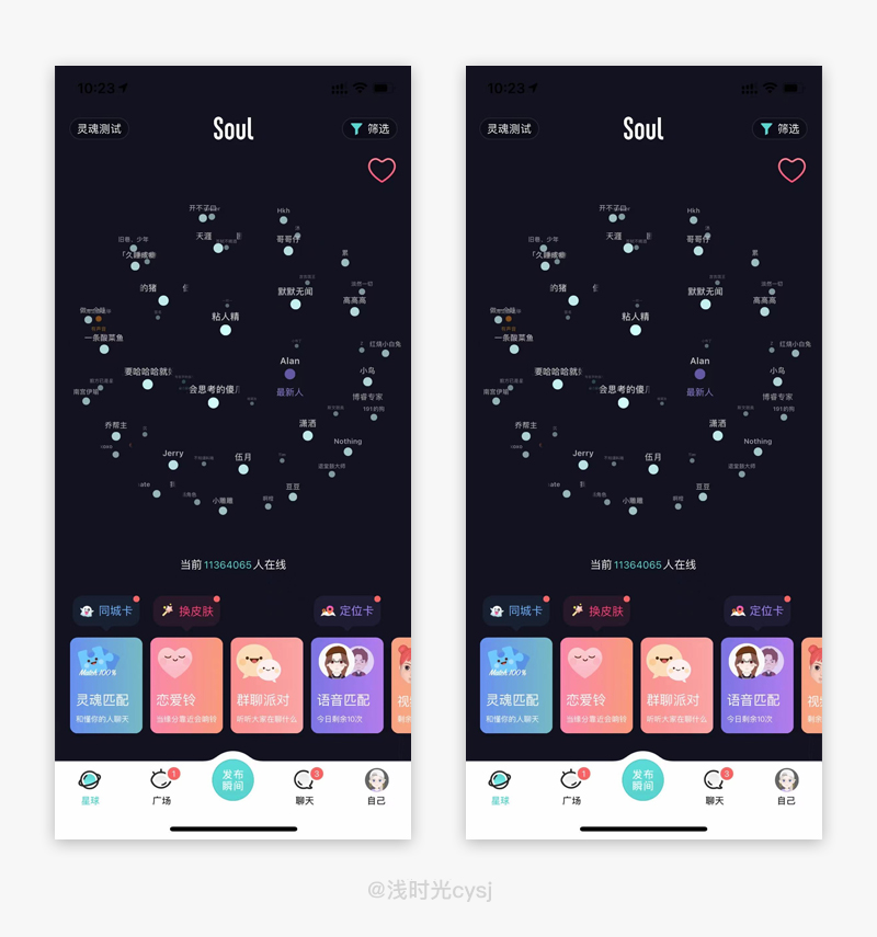 现下大部分的交友软件一般都是摇一摇和直接添加好友,很呆板,使用户没有继续转化的欲望,soul用不一样的表现方式留住用户。