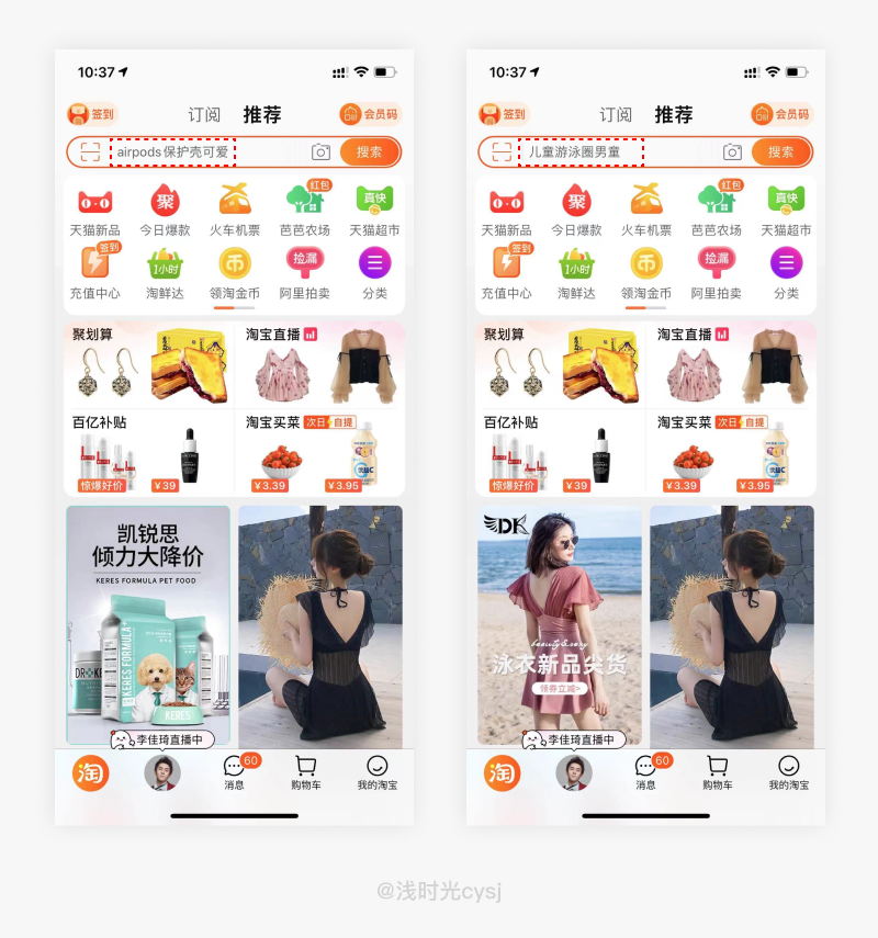 052.「淘宝」搜索框-触发用户转化动机的滚动词条