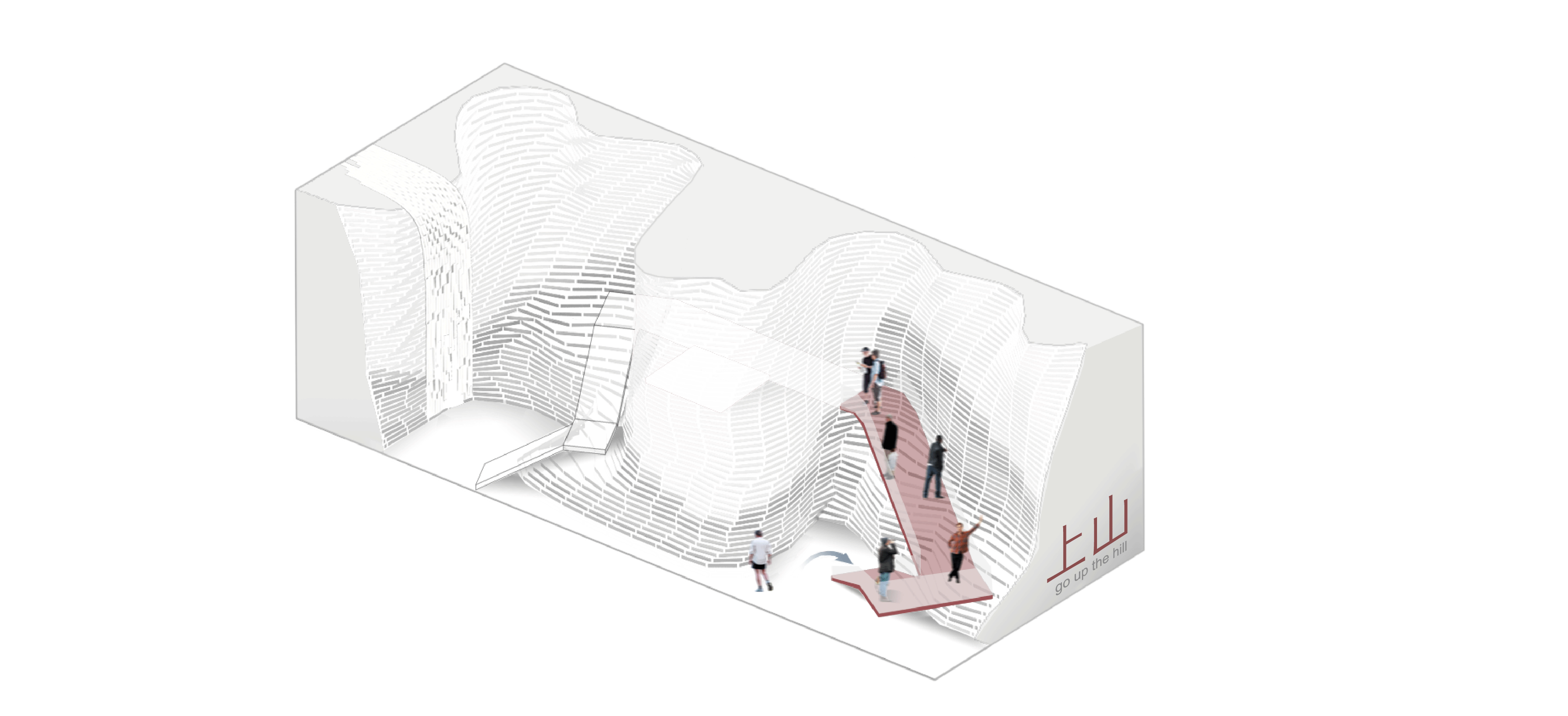 TOWOdesign从中国传统的山水画中提炼灵感,将地板产品的展示与游山玩水的体验进行融糅。他们运用参数化设计生成“木山”曲面,运用程序进行搭建构件的分解,再借助数控机装加工,将上千个地板部件组装为“山体”。同时又利用多媒体技术,将木板变成流动的“水体”。