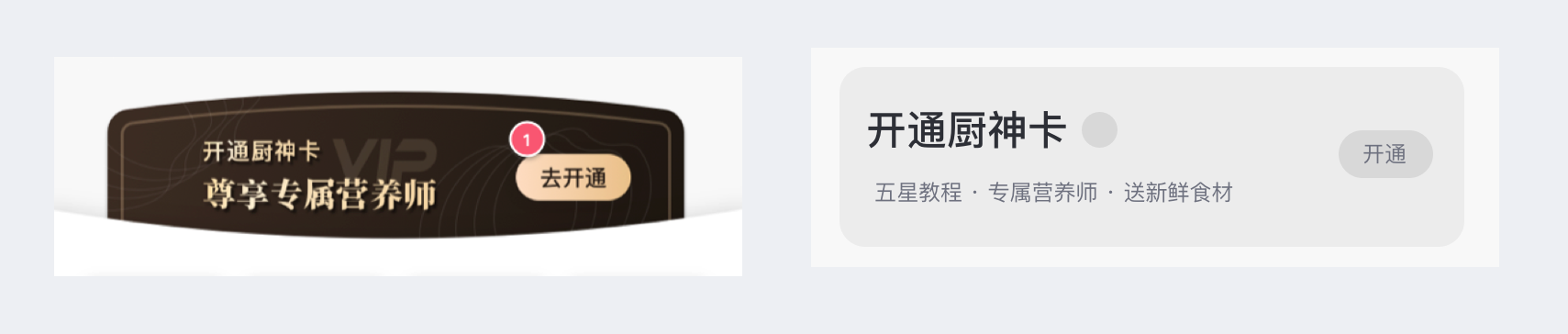 其次,整个版面白色区域较多,那么中间的开通会员卡片的色彩就过于重了,虽然我们需要引导用户去开通,但是视觉上给人感知太强烈,就感觉有点突兀。