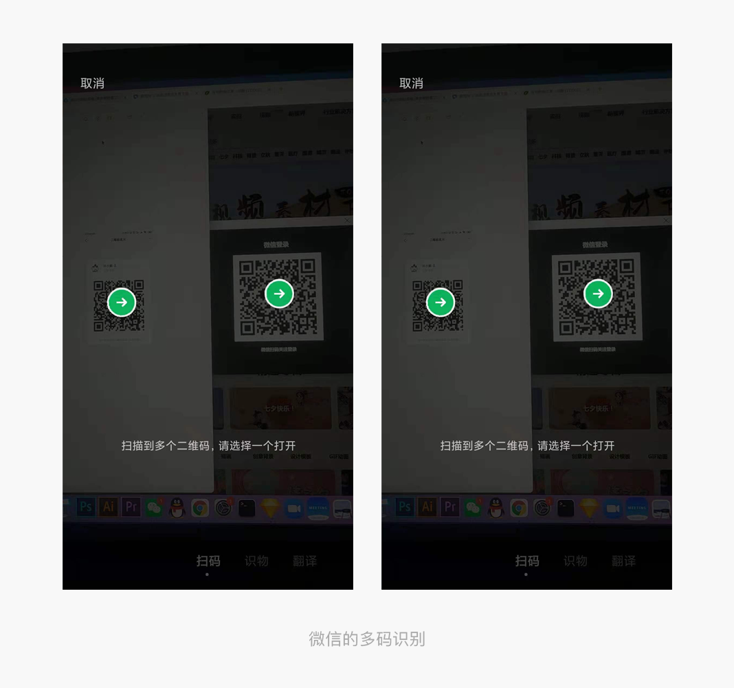 设计思考:扫码已经成为生活中的高频操作,往往我们在付款或者识别时候会出现多个二维码的情况,我们在优化自己的功能时要多结合实际场景出发,不断精细化打磨,让产品设计更好,更简单的方便用户的使用与生活。