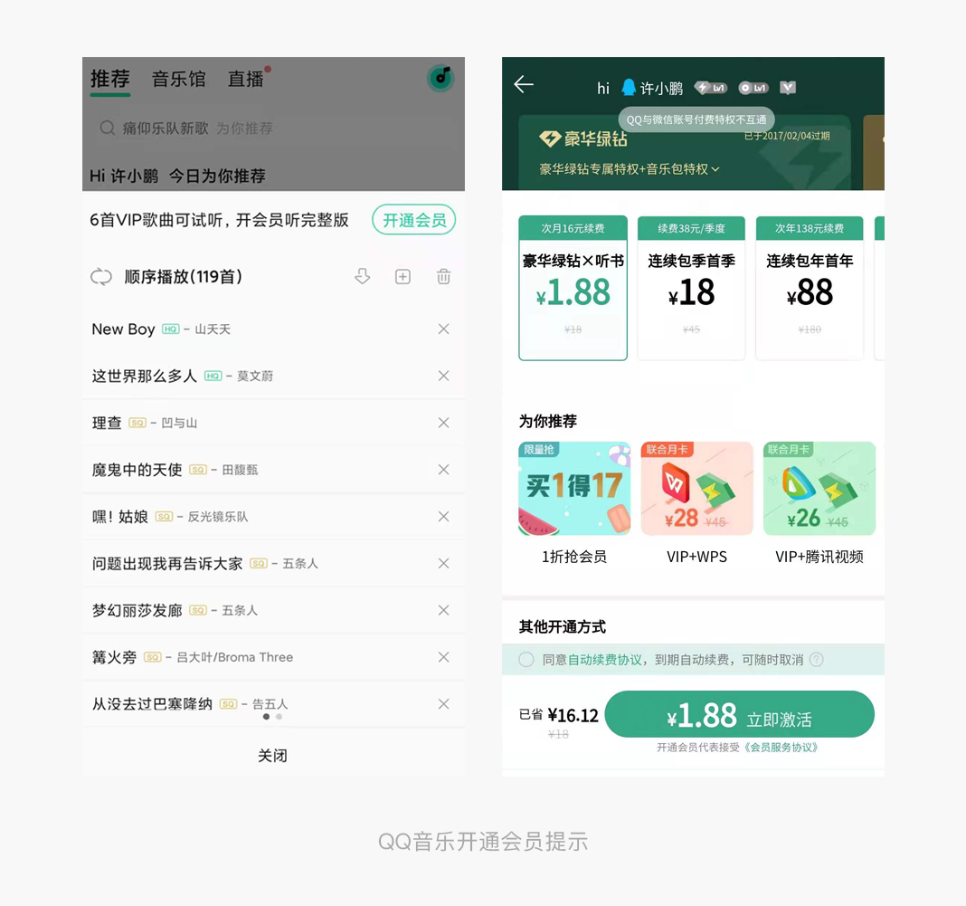 13.QQ音乐开通会员提示