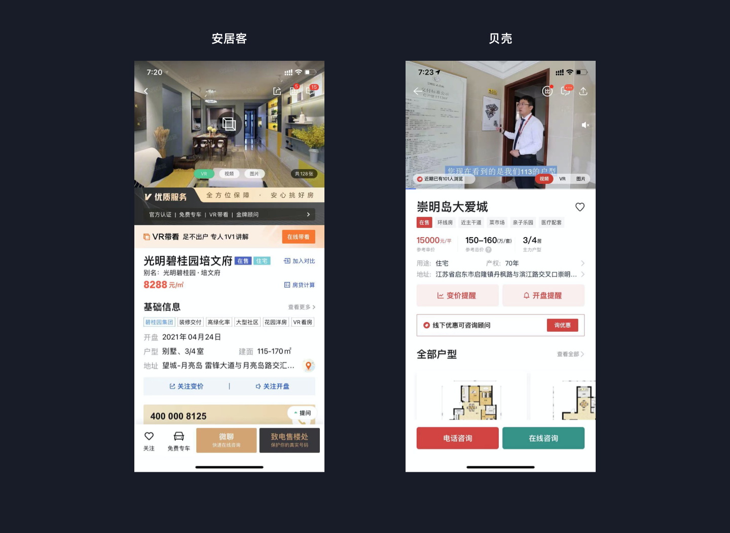 但是又根据平台定位(安居客新房是属于开发商直联,贝壳是渠道分销)不同,做出了差异化的设计,突出了平台优势。
