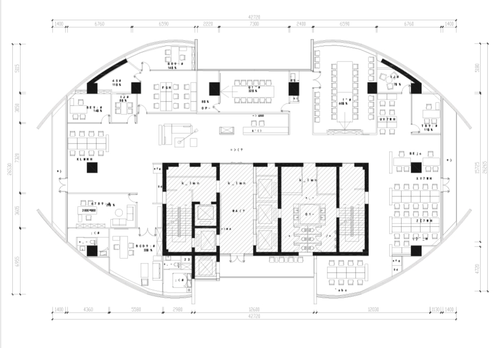 项目初始为一个巨大的不规则椭圆空间,除开外围玻璃幕墙,整个空间仅由10根钢筋混凝土承重柱和两小段弧形外墙作为支撑。