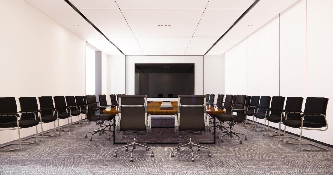 会议室的铝板天花十分考究施工水平,但带来的直线效果与墙体相衔接,增加了空间的连贯性和立体感。
