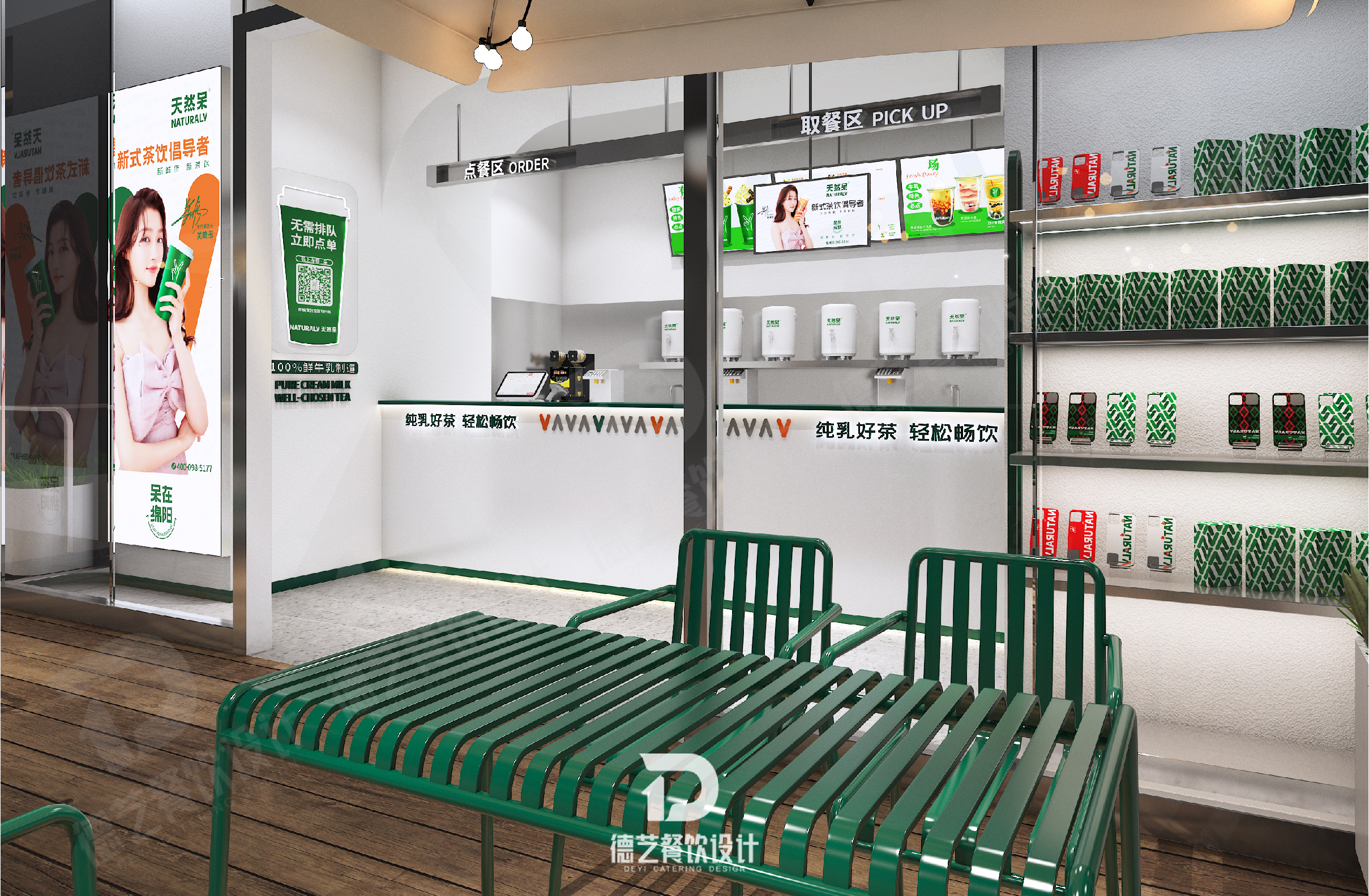 “喝奶茶”一直都是年轻人最普遍的休闲方式,现阶段,饮品类别不断丰富、品牌数量持续增长,在竞争激烈的大环境中打造具有差异化的品牌核心优势,成为奶茶品牌破局的关键。2020年,德艺餐饮设计和天然呆达成深度合作,80多位顶尖设计师和100多位专职人员全程跟进,开展一站式省心高效服务,在品牌定位和空间设计板块为天然呆赋能,携手明星关晓彤,让天然呆迅速出圈,实现4个月快速裂变100多家门店,成为家喻户晓的国民奶茶品牌。