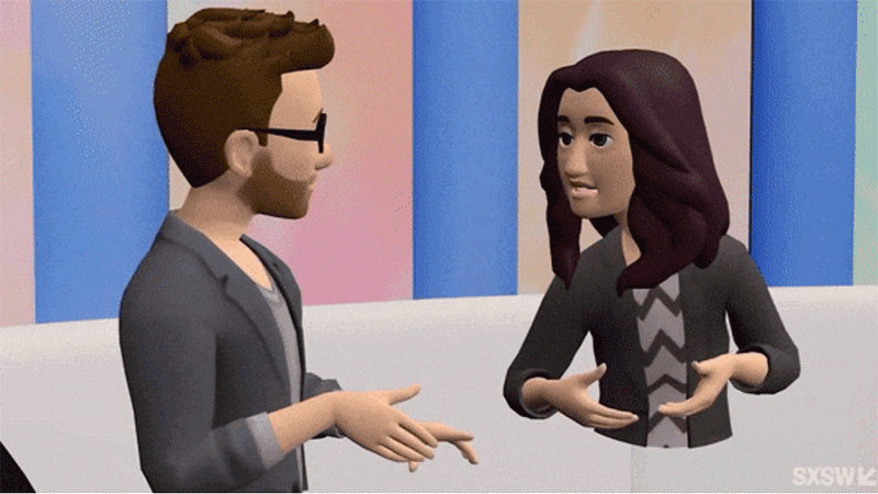 依靠面部捕捉、表情捕捉、动作捕捉的技术,实现了真人与虚拟形象的动态同步,降低了真人化虚拟形象的设置成本。在SXSW2021音乐节上,展示了Facebook新avatar系统推出的VR社交应用Horizon。人与人能通过虚拟形象进行实时互动,除了有自己逼真的形象外,还具备真实的眼神表情和肢体动作,还会根据肢体动作变化不同情绪。