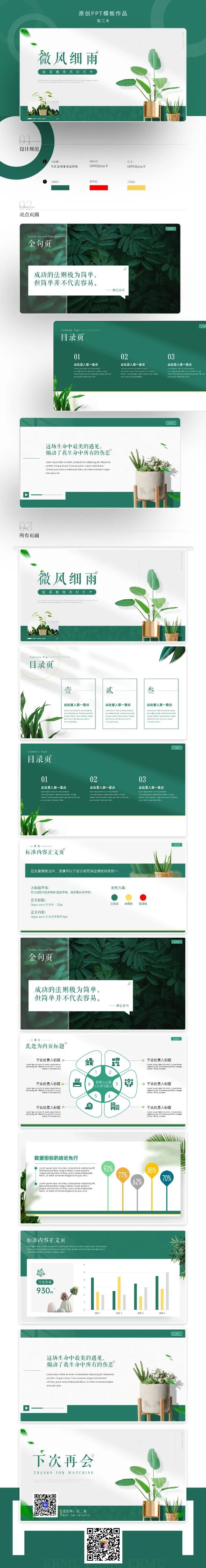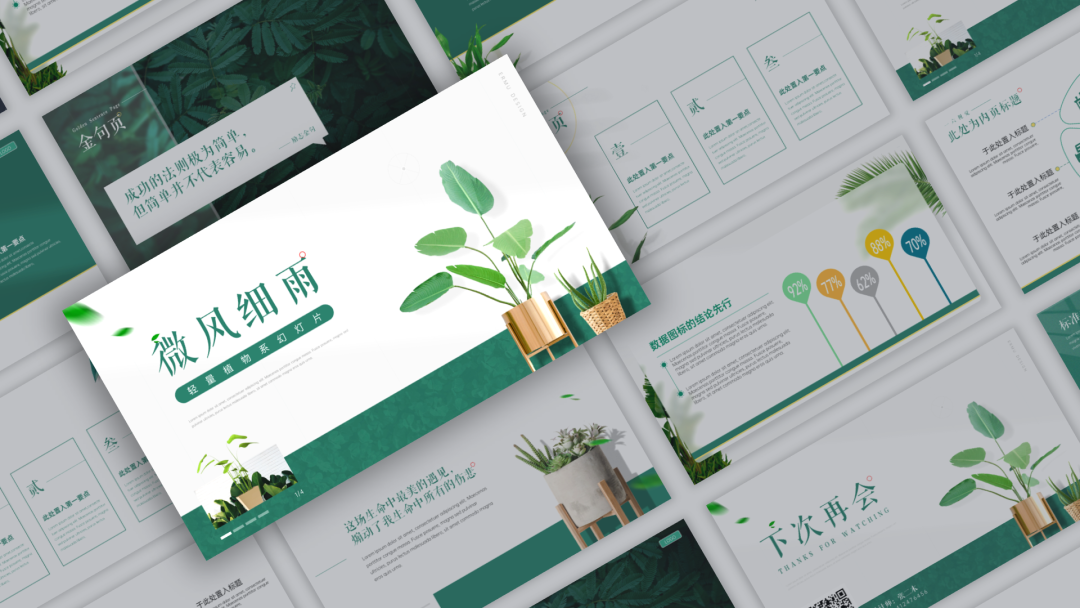 最后我们来看一下《微风细雨》这套PPT模板总预览吧👇