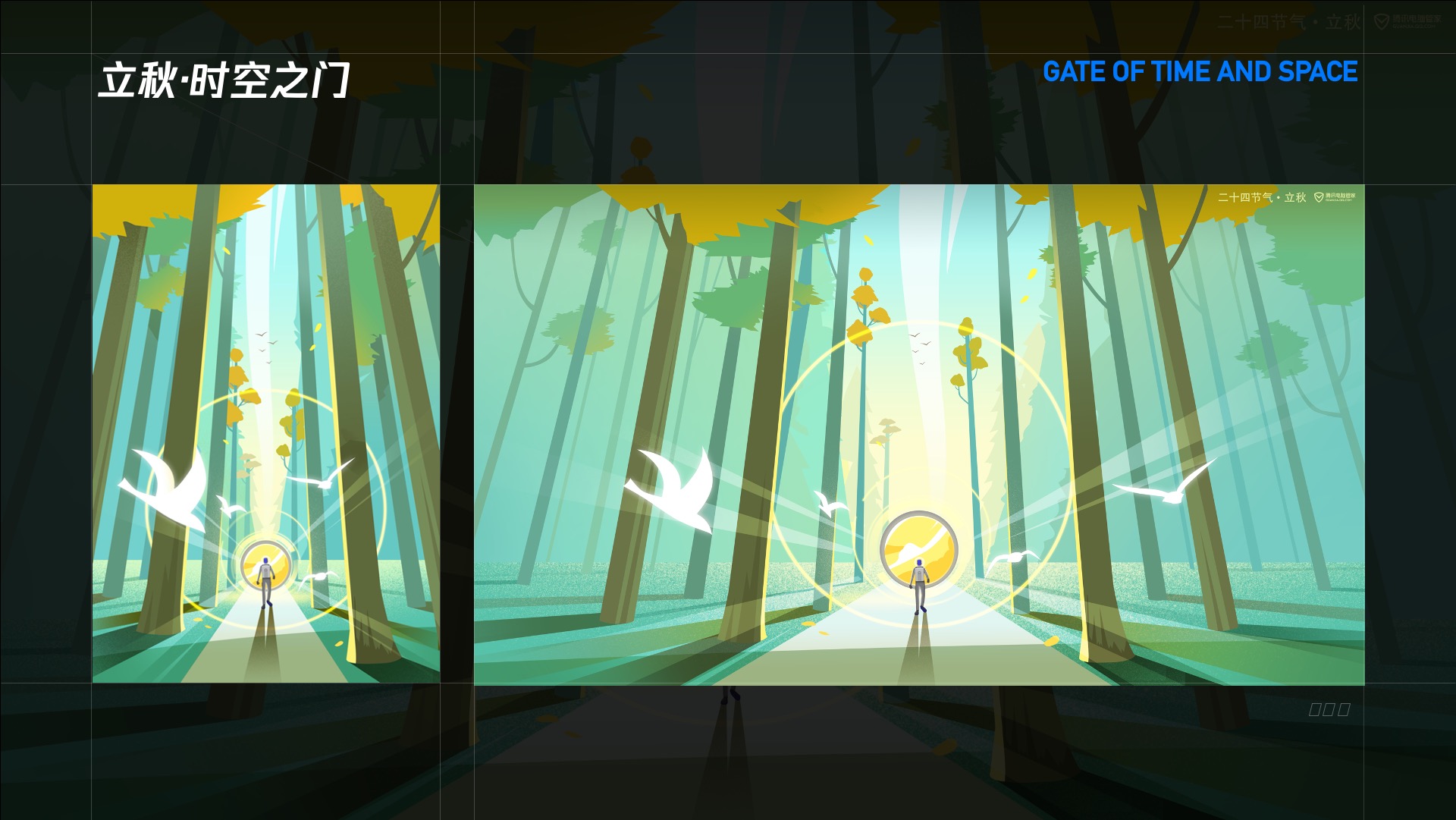 当前节气插画的展示场景有开机Tips、手机壁纸、电脑壁纸、运营banner以及手机管家启动闪屏等。由于展示尺寸的不同,在延展电脑壁纸时结合画面需要增加了一些细节丰富度。希望带给用户最佳的视觉体验。