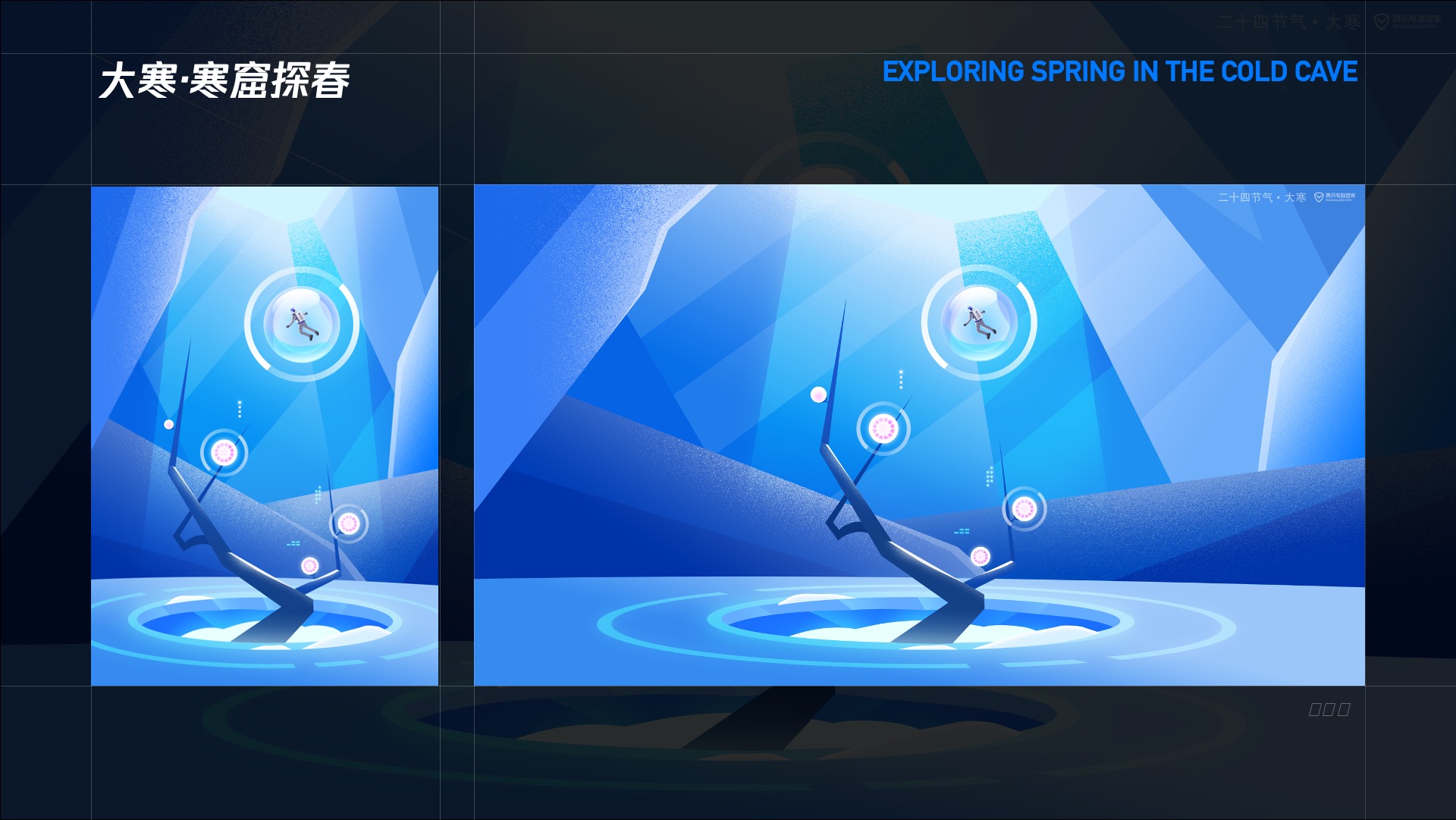 二十四节气系列插画是电脑管家的经典设计之一,而节气本身也是中国古人在农耕时期,通过观察天体运行从而总结出的自然界气候、生物的变化规律,是属于古人的科学理论。古人的科学和未来的科技结合,让人们在感受季节变化的同时,可以体会到新科技的理性,纯粹,也可以更好的传达出腾讯安全的使命和责任感。