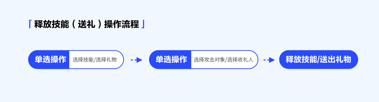 于是我们想到,将MOBA游戏中玩家最熟悉的释放技能操作的交互逻辑移植到送礼交互上,恰恰能将送礼操作场景化游戏化的同时,不超出用户预期,达到在产品中植入【游戏社交】这一品牌基因的目的。