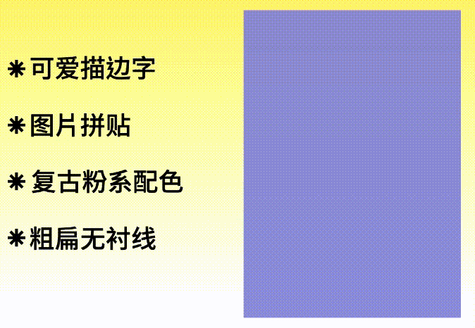 分析完特点,就要开始使用这些特点,但是要注意避开原图的构图和配色。比如标题从上方换到中间,颜色也由粉色为主变为紫色。其余的特点就只需要按照原图风格来。