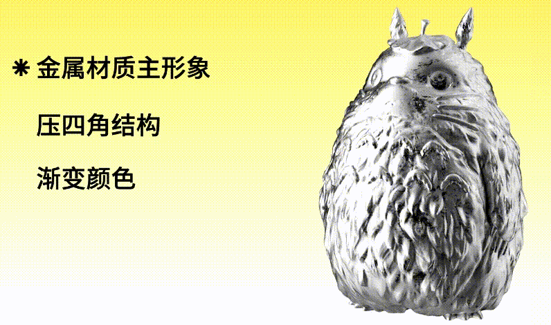 首先用C4D做一个金属材质的主形象,然后把主形象置放到版面,然后把要传达的信息压在版面四角,最后加上渐变颜色充当背景,海报就完成了。