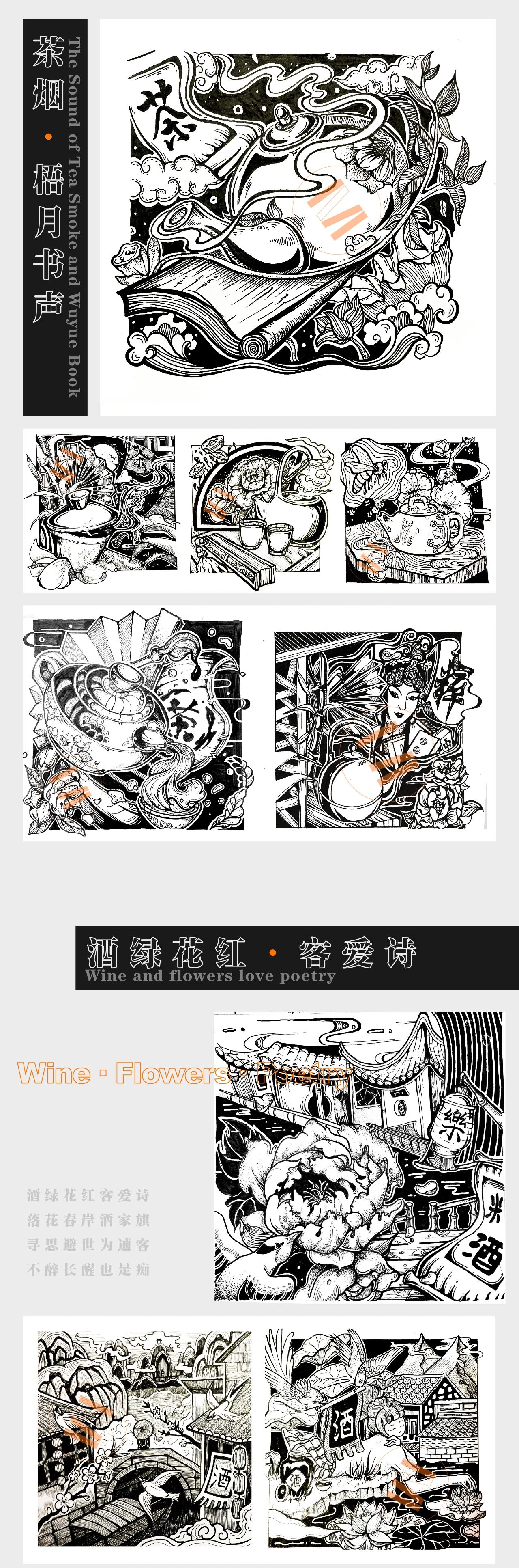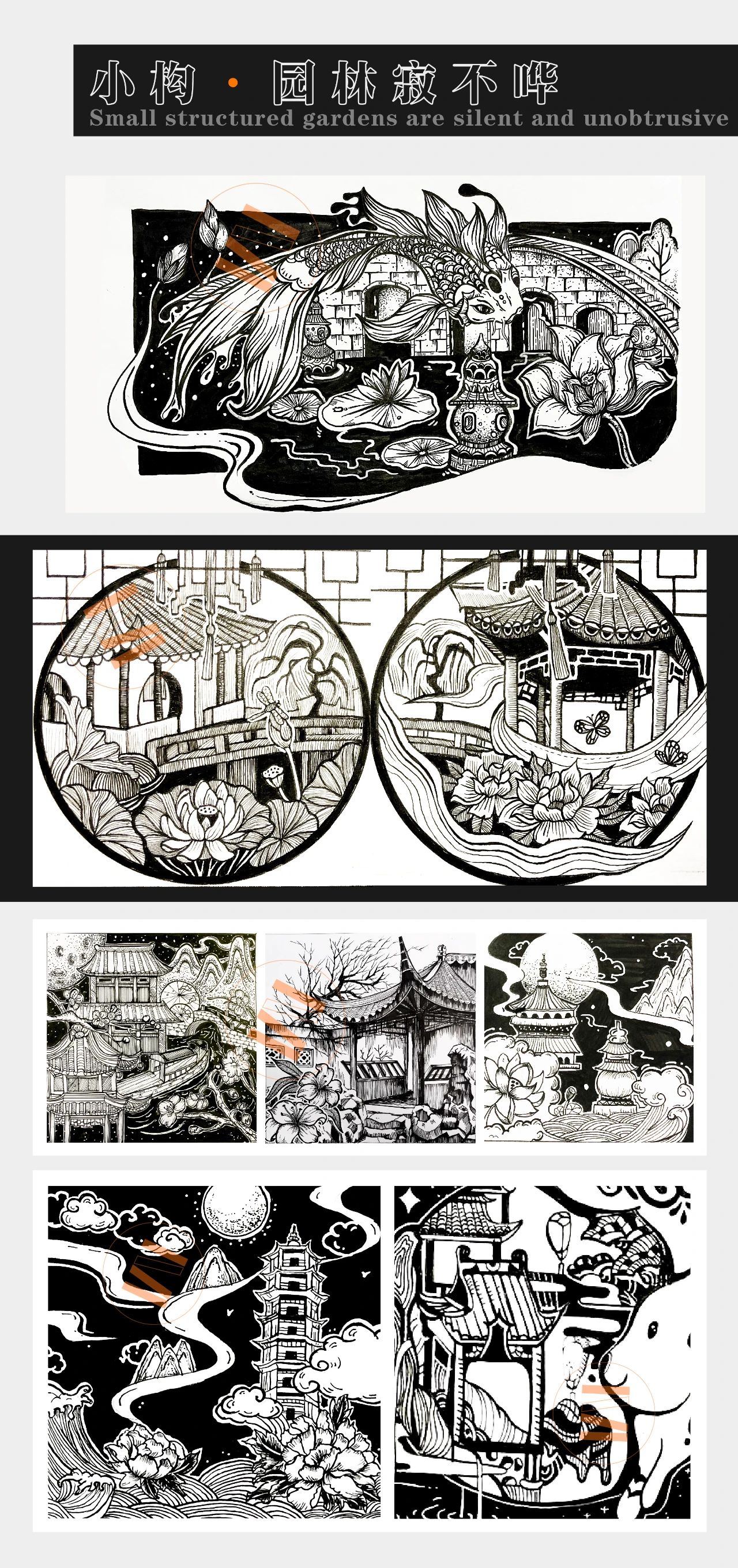 黑白装饰画,视觉传达考研手绘 优秀快题手绘作品