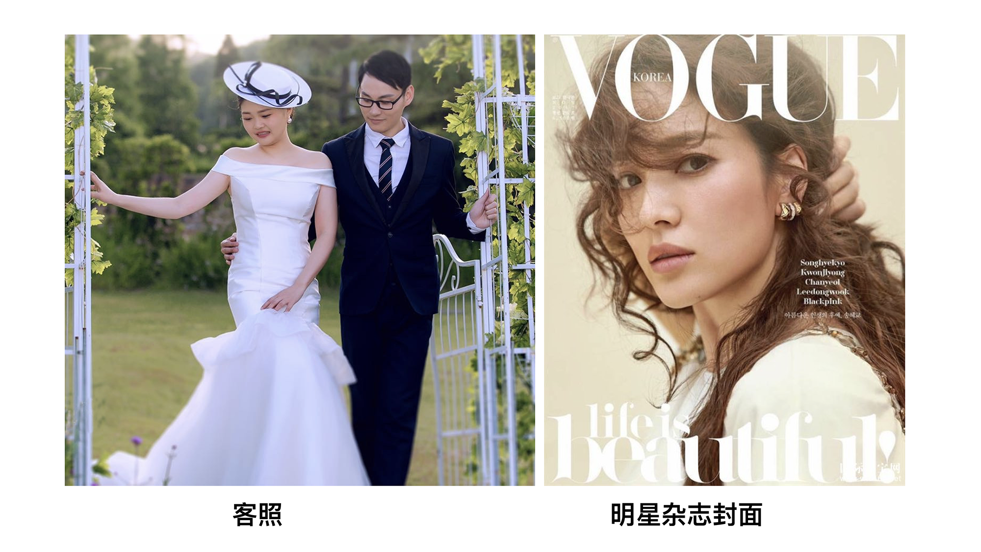 除了把修饰对象从普通客户婚纱写真换成修明星和超模,