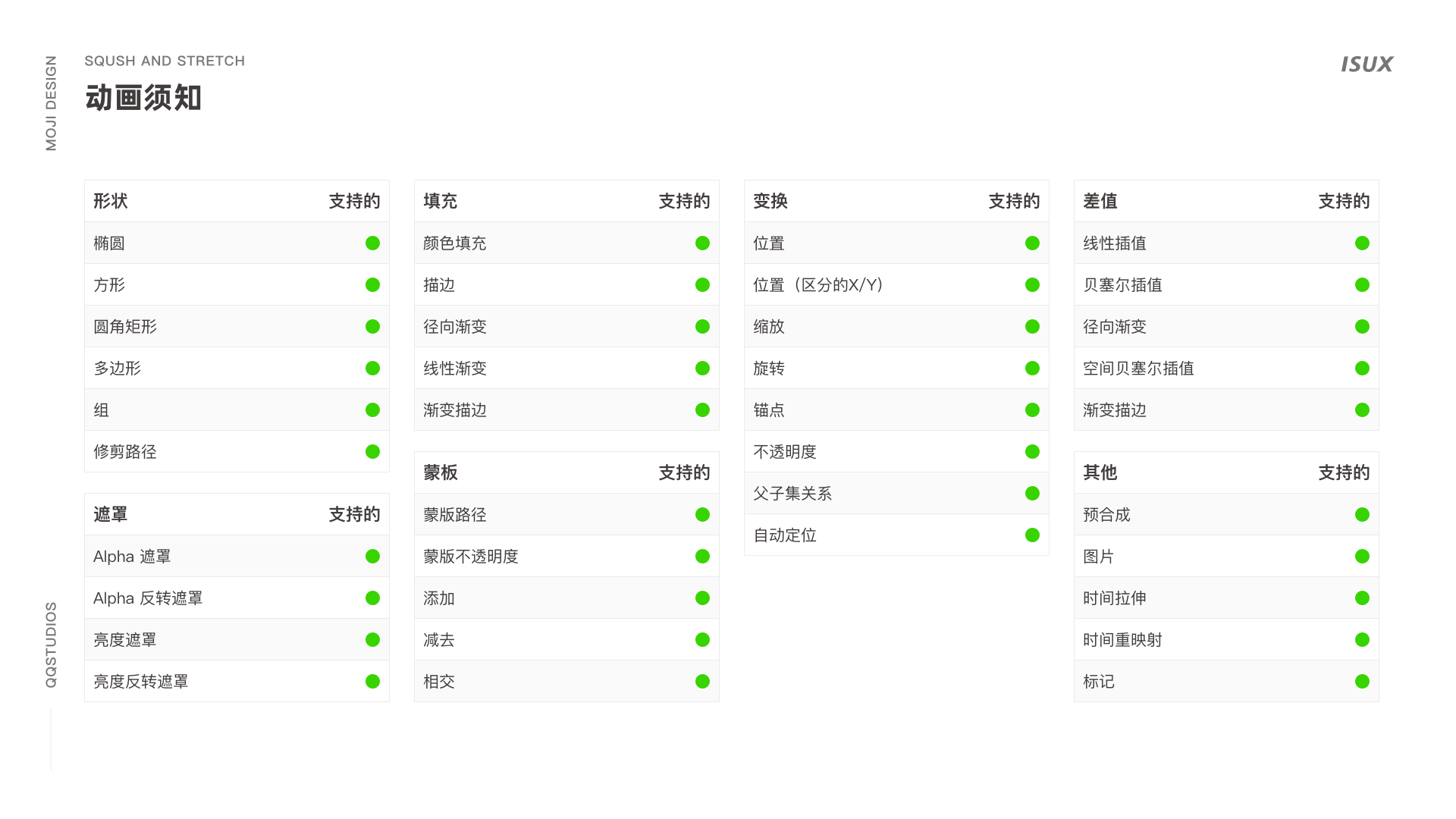 ·功能:制作时只使用下图中Lottie支持的AE功能