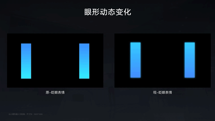 03-1眼型变化,流畅的眼型变化,可以使小度机器人情绪更加柔和。如图左、右侧眨眼表情对比。