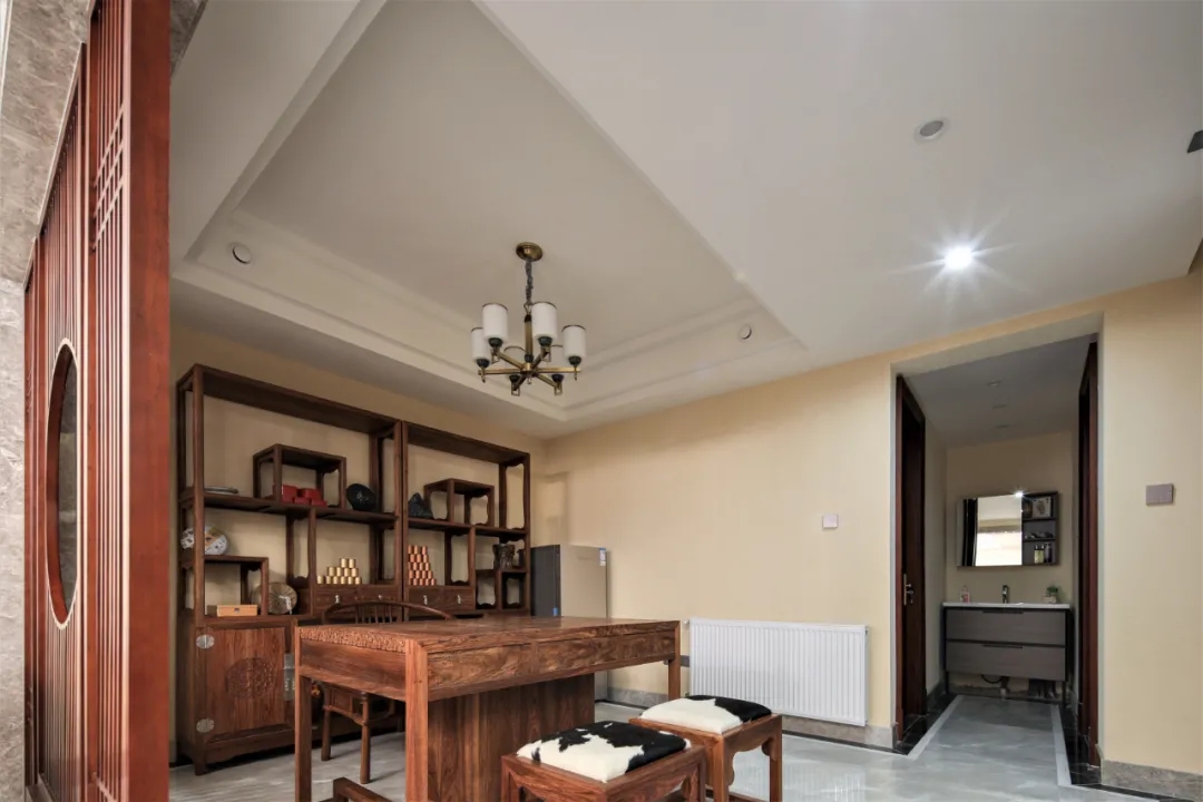 素雅的色调、去繁从简的空间陈设方式,将一切简约到了极致,却能沉淀浮躁的心性,予人于一种诗意般的体验感。隐去传统中式繁复沉重的设计表现与具象形态,点到即止,明确空间的界限。