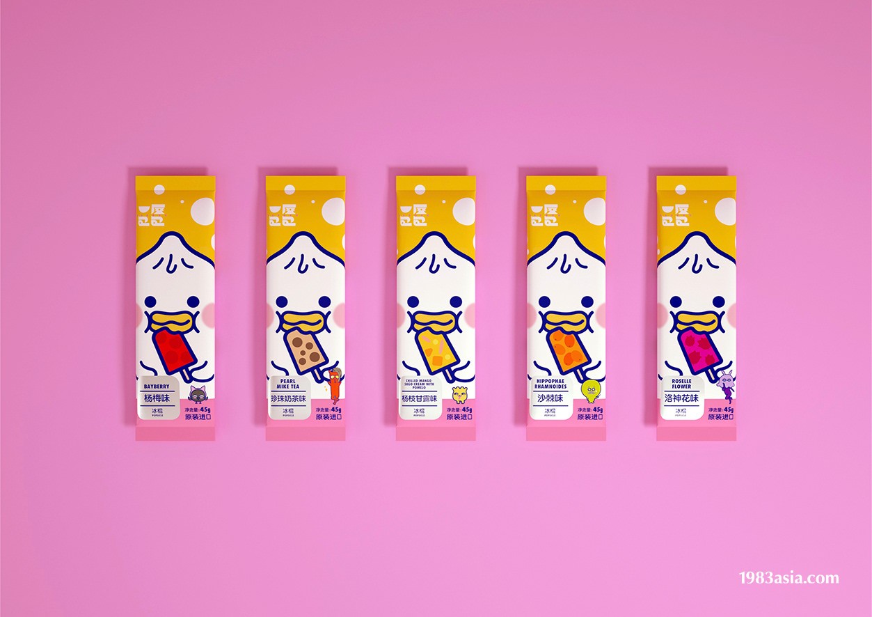 大包小包(现已更名为:一屋包包)冷冻点心,目标是为繁忙的现代家庭提供健康,美味,方便的食物,并借此向下一代传递关怀的温度,做一个陪伴家庭欢乐成长的品牌。1983ASIA将品牌的核心产品如包子,水饺,汤丸等,与地球寒带萌物如企鹅,北极熊,海豹等进行结合,设计出有趣有爱的吉祥物家族,塑造独特的品牌视觉体系。每个吉祥物都设定了各自的性格特点,爱好及缺陷,他们会一起玩乐,偶尔也会吵架,但最后总能找到相处之道。尊重彼此不同,像家人一样一起生活,互爱互助。这就是品牌想要传递的,以 " 爱 " 为核心的价值观。幸福抱抱,健康包包。