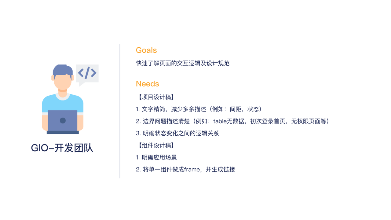 根据工作需要,这三类角色使用设计稿的目标也各有不同: