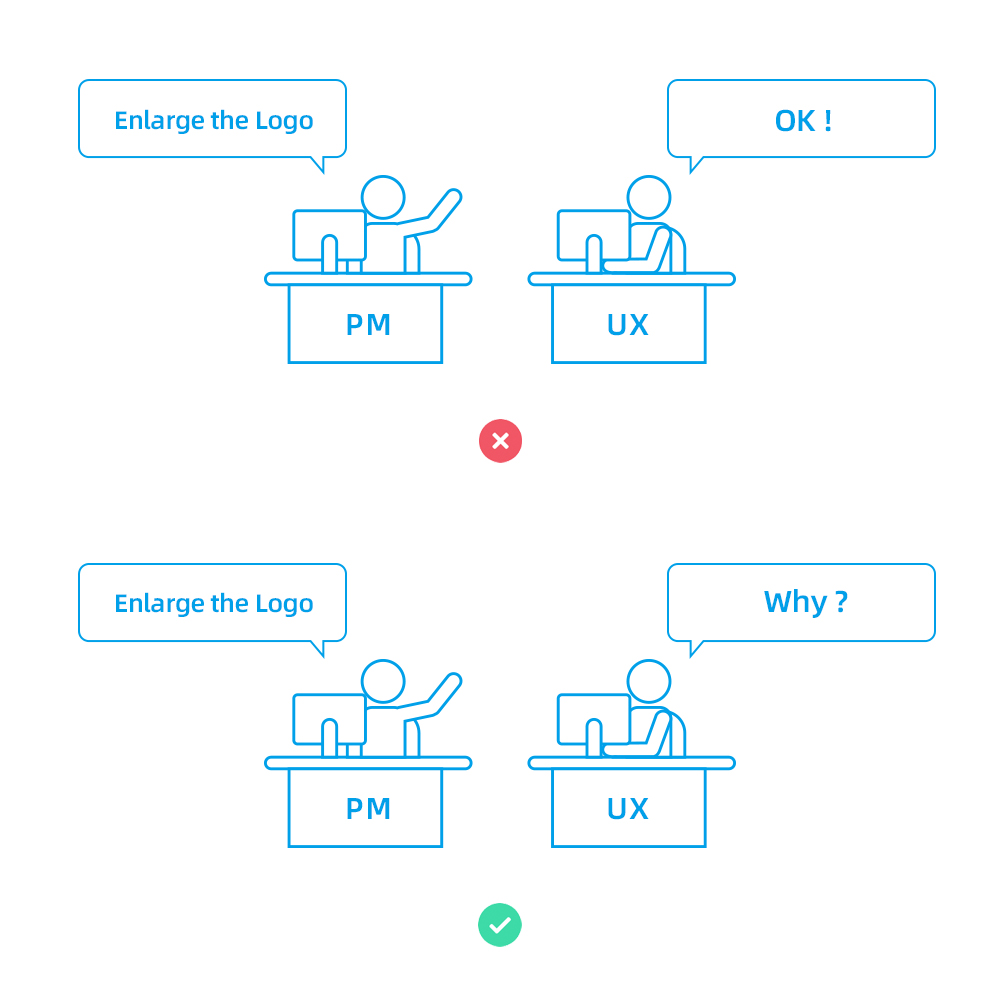 当设计师接到新的需求时,往往使用惯性思维,反正产品或交互出了高保真,只需要画图就行了,对于需求的合理性和产品与交互逻辑漠不关心,就算出了问题之后再改。正是因为我们在做需求之前没有多问 WHY 和 WHY NOT,没有意识到产品体验会出问题,最后无形当中增加了自己的工作量。