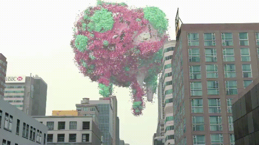 景观 - 气球的表面是水培系统,它可以吸收空气中的雾霾,生长出植物,作为景观系统,爆炸之后可以将植物散落地面,更新废弃的游乐园/城市。