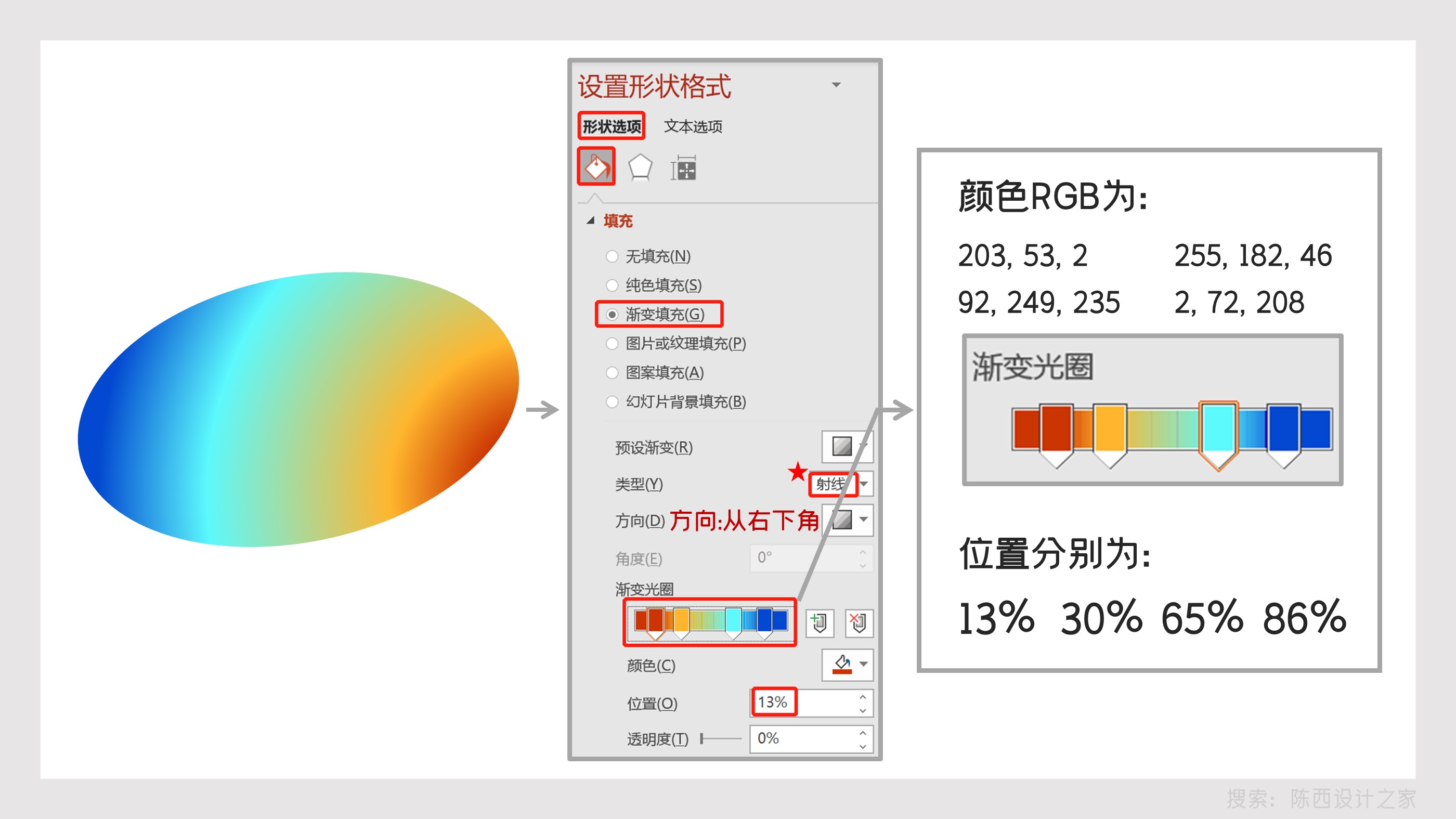 渐变颜色数值还有滑块的位置关系,大家参考上图的设置就行。
