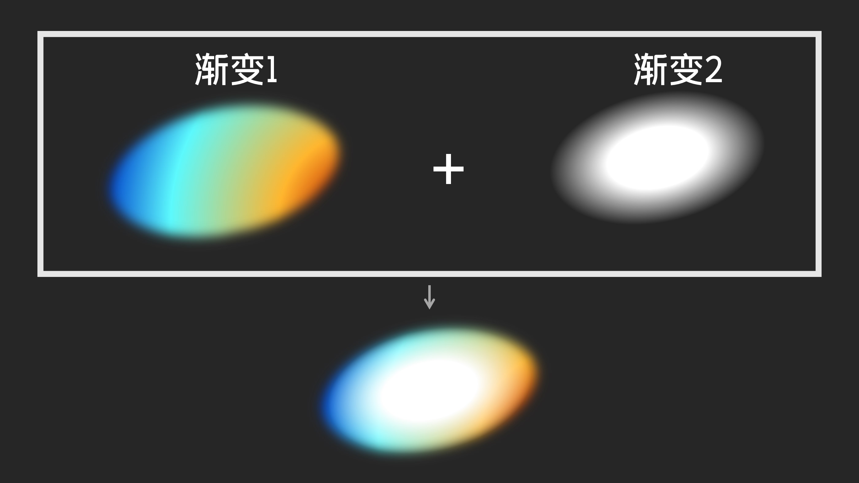 这两个椭圆形的渐变设计好之后,将两者进行叠加一下。如下: