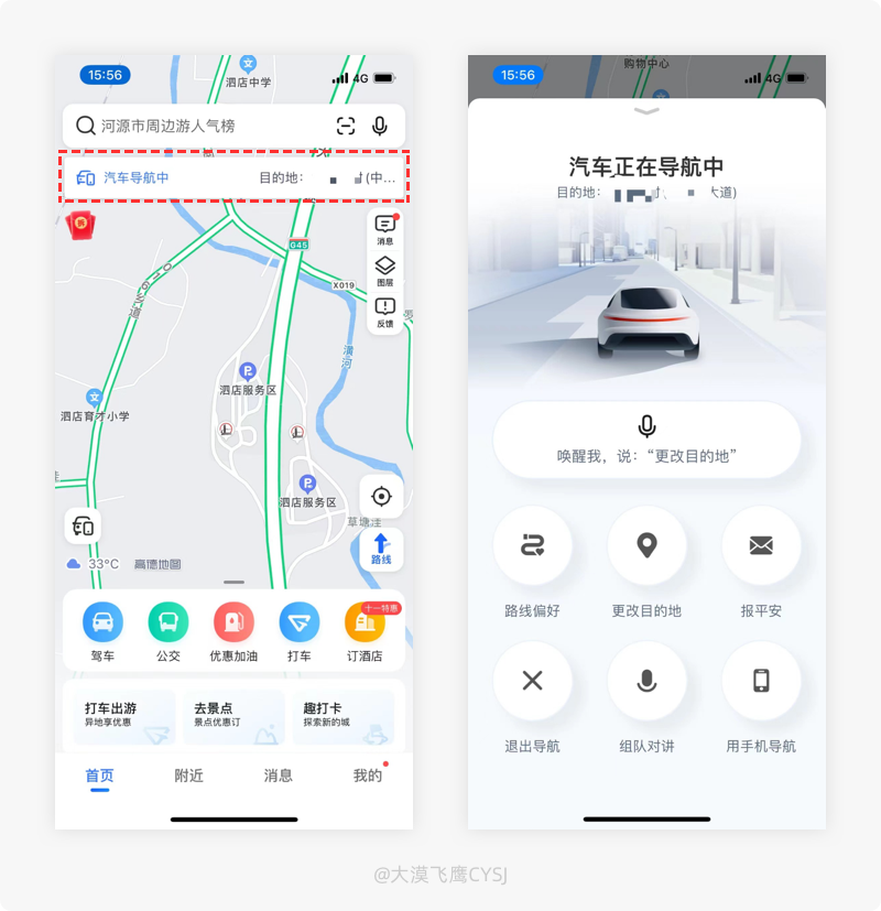 使用高德地图,登录同一个账号且绑定车辆后,即可车机互联。平时在社交应用中收到的地址直接用高德地图打开,一键导航后可自动从手机转移至高德车载导航,非常方便,即便从一开始就用车载导航,也可从手机打开高德地图后直接更改路线偏好、更改目的地等操作,一键同步。在驾驶过程中,通过手机端进行导航控制不仅方便(用户偏好),还能直接将手机交给其他人操作,减少驾驶员分心的情况,大大提升了安全系数。