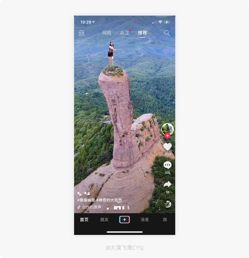 抖音在视频单个页面中融入了9种交互手势“摇一摇-找附近也在摇的抖友;单击-播放/暂停;长按-调出分享及部分功能弹窗;双击-点赞;多次连击-连续点赞;上/下滑动-前后切换视频;左/右滑动-tab类型切换。抖音如此多的交互手势作为隐藏的存在,也许很多用户还不知道,即便知道,也可能是习惯性的去固定入口操作,但站在设计师的角度,我们应该合理的将交互手势更多的融入到自己的产品中,给用户提供便利的同时,逐渐培养用户的操作习惯,让其在后续的应用中可不加思考的利用便捷操作快速满足自己的需求。