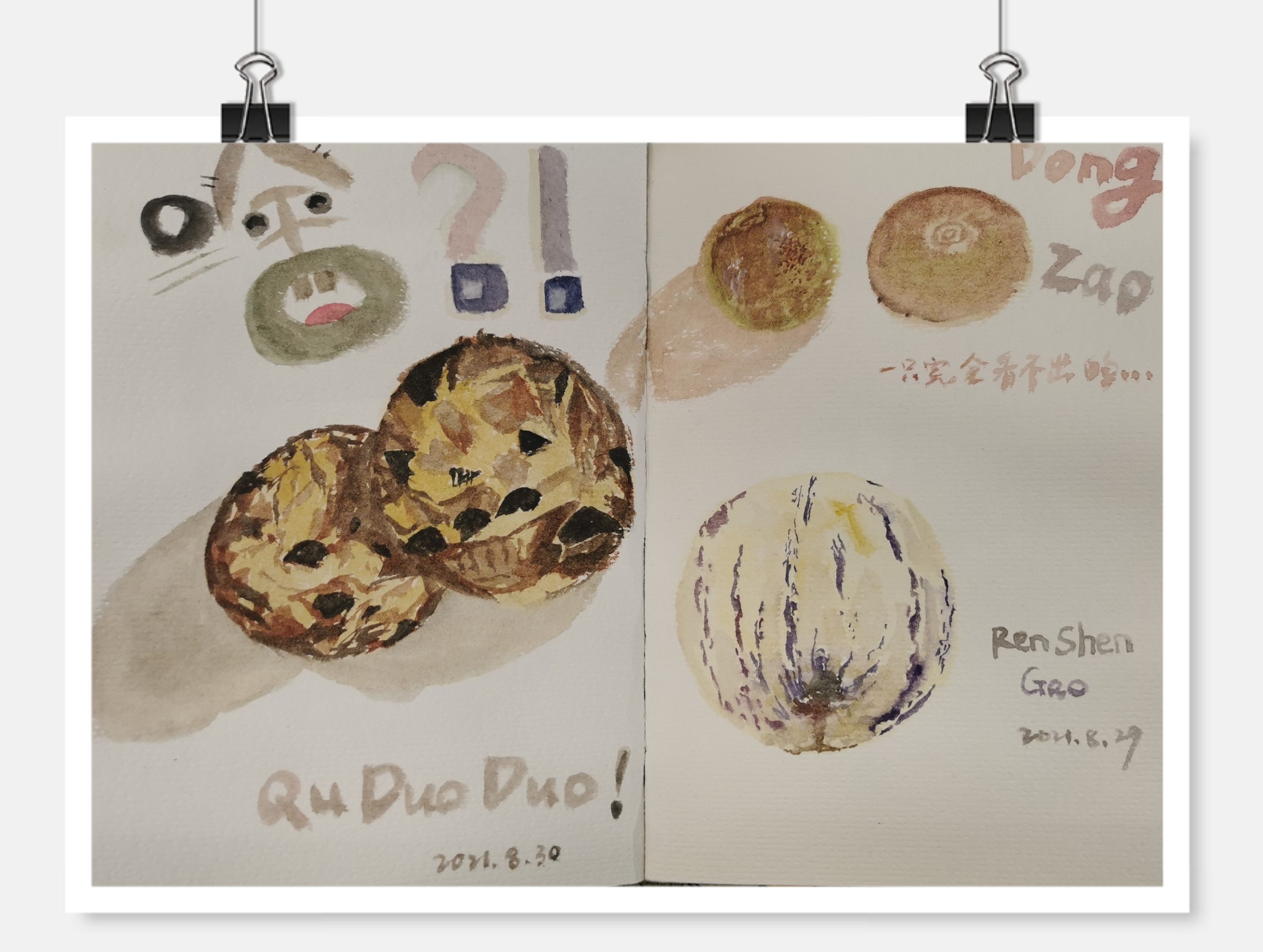 前一段时间的画画风格扑朔迷离,没个章法,迷上了画吃食。