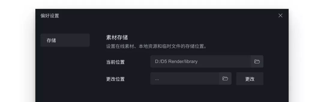 新增【偏好设置】,可以将在线素材和自定义资源迁移至你指定的“工作空间”,包括全部在线素材,本地素材,以及自定义HDR / LUT / IES文件和部分临时文件。