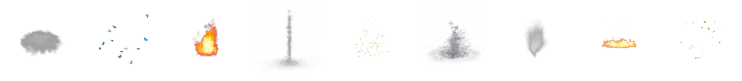 喷泉、跌水、烟雾、火焰、萤火虫等