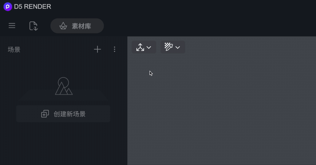 顶部导航栏保持简洁的同时,优化了排布逻辑。将导入入口统一整理在左侧,从此处选择素材放置;中间是常用工具集,方便快速布置场景,未来可扩展更多的高级功能或素材工具;右侧则是渲染输出模块。