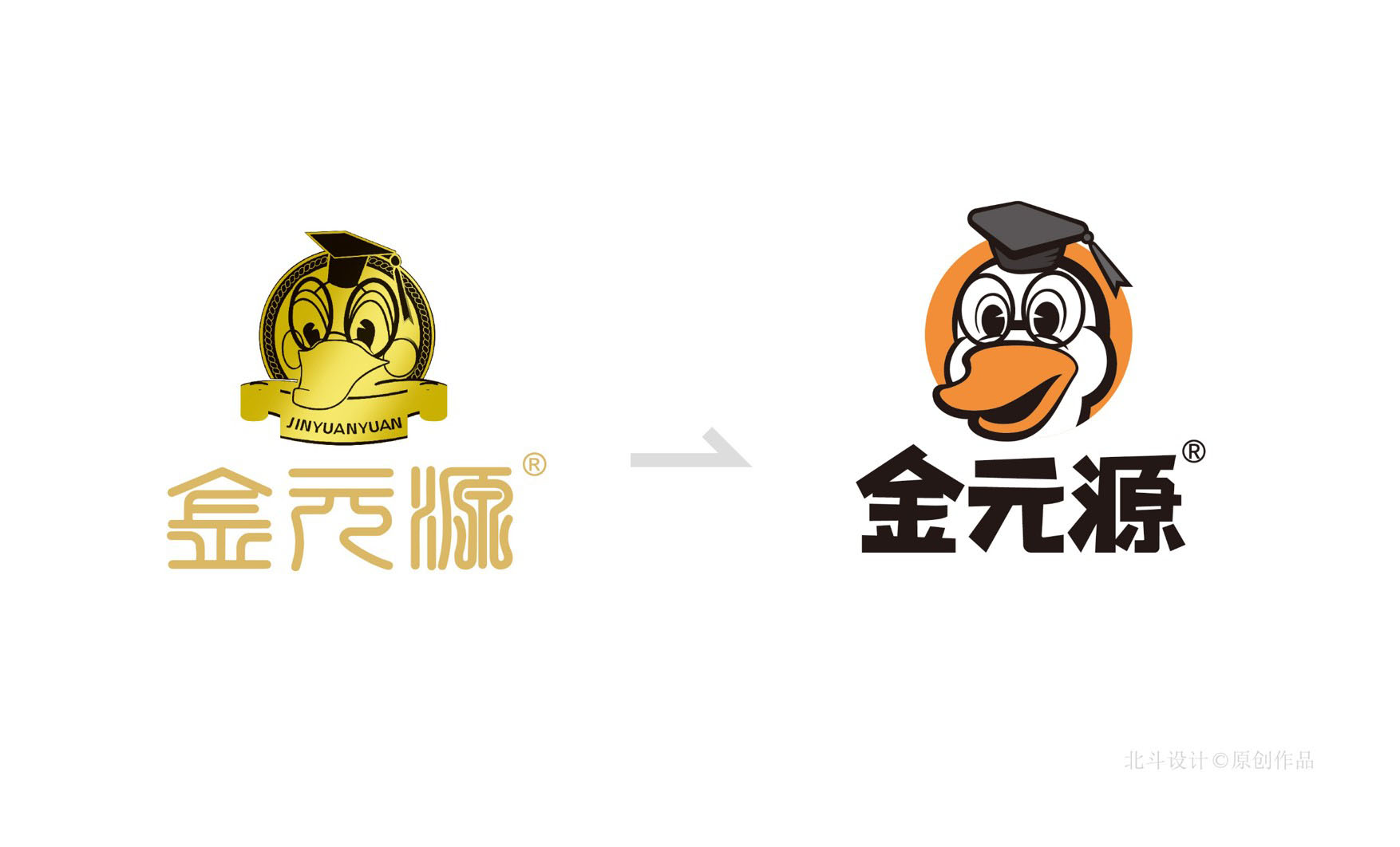 1.在保留“金元源”博士鸭基本特征的基本上,针对原有LOGO存在的问题进行了优化。