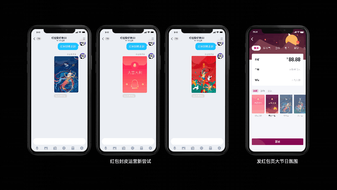 数据也验证,开拓原本的框架限制后,用户的接受度很高,这为之后培养用户使用个性化封皮奠定基础,也为红包封皮的拓展创造更多情感化空间。