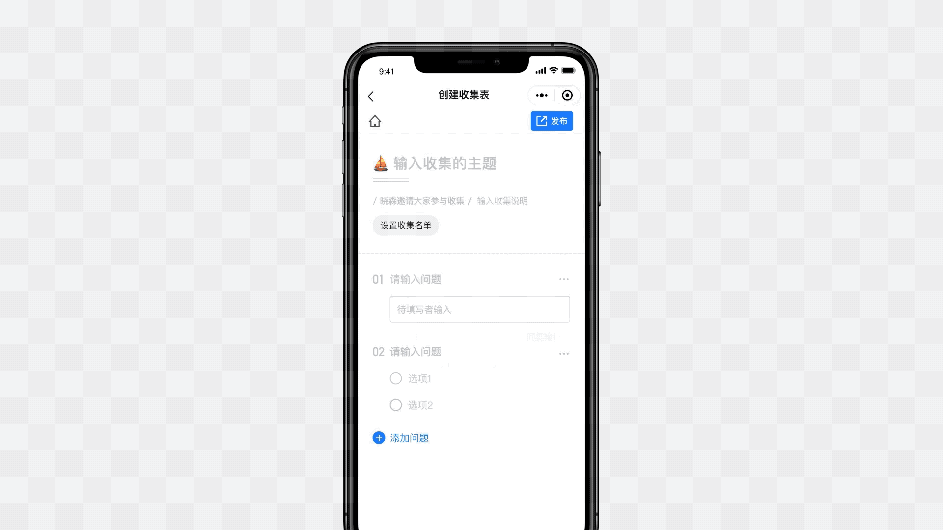 1、创建收集表细化为:新建收集表-创建/编辑题目-收集表设置-发布并分享-查看详情和结果。