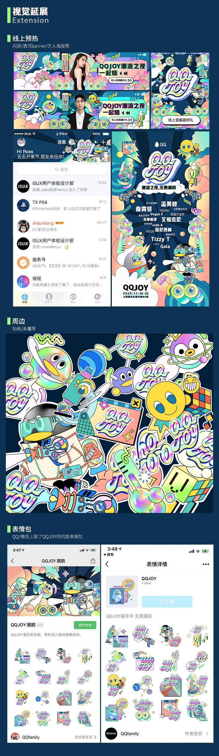 确定主视觉后,延展线上预热运营资料,线下物料延展,同步上线了微信表情包和QQ表情包,加强活动运营气氛。