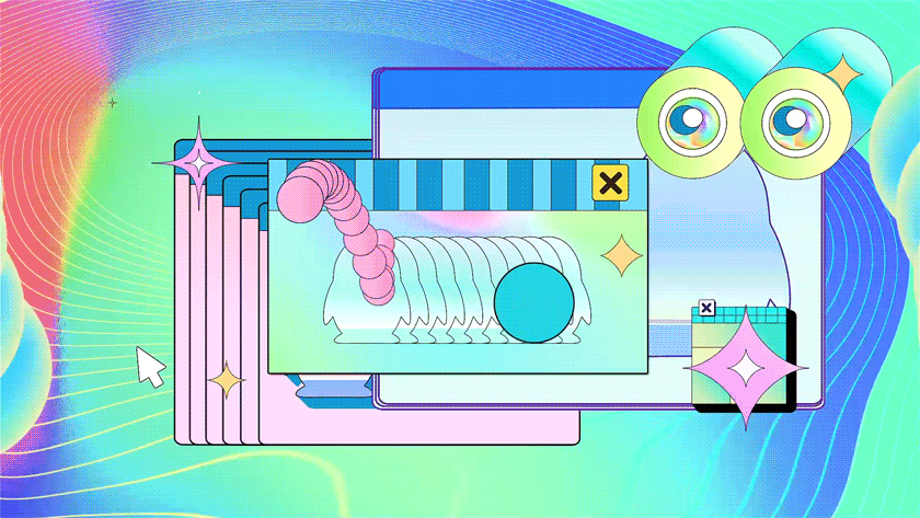 酸性设计,相信大家已经对这个名词非常熟悉。简单概括其表现形态为高饱和度折射材质,渐变流动的视觉符号,其新锐的图形符号和彩色浪潮,给人以迷幻绚烂的奇幻体验感,和年轻群体爱刺激爱探索的探险精神不谋而合。所以决定选用“酸性平面”来演绎这次的视觉风格。