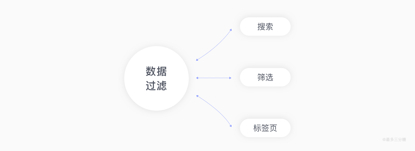 数据过滤由搜索,筛选和标签页构成。