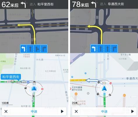 高德地图App在导航过程中,出现通向多方向车道时,在语音播报正确车道的情况下,手机上标注的行驶车道会不停的闪烁提醒用户选择正确的行驶车道。