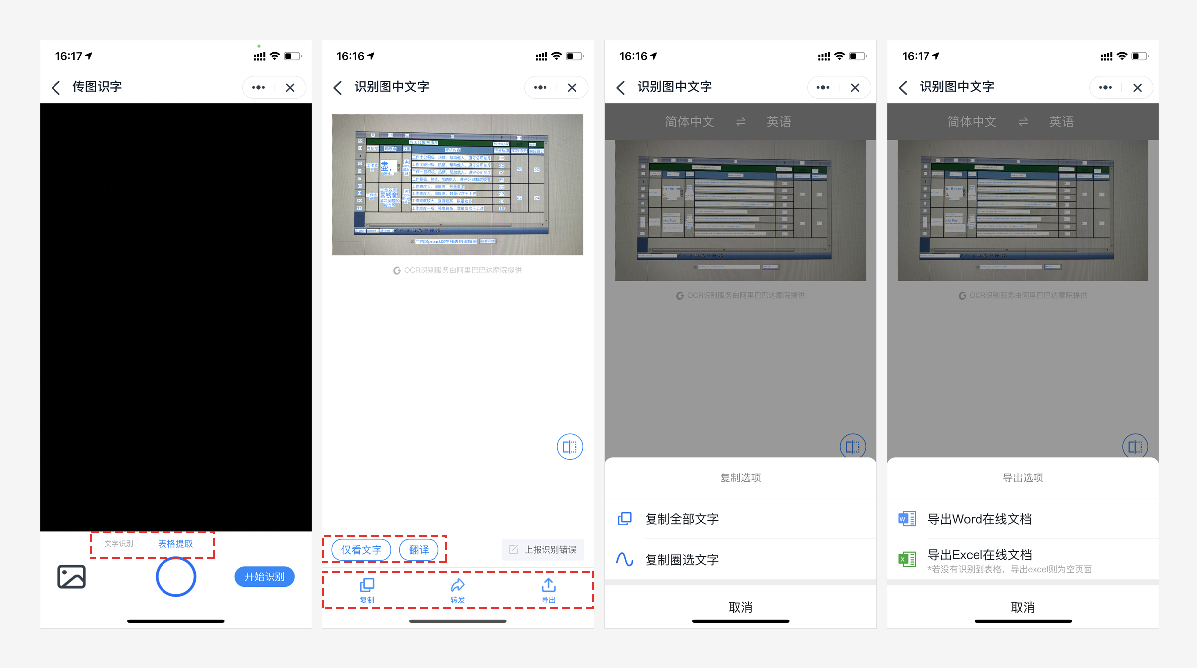 钉钉传图识字小工具采用OCR识别技术可以识别用户上传图片中的文字和提取表格(图片形式)中的信息,并以文本和表格的形式导出,也可直接复制文字。复制文字时可以选择复制所有文字和框选部分文字。识别出的文字还能直接翻译成其他语言。