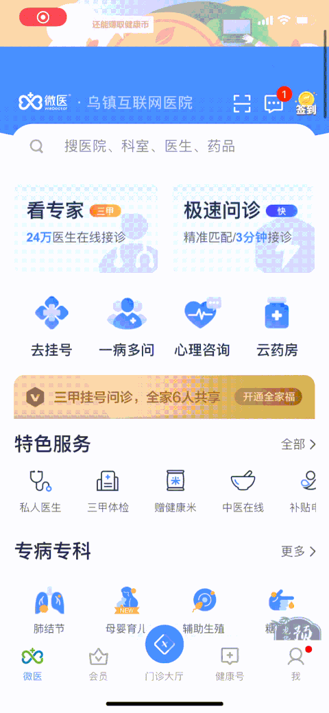 微医在首页设计上有两个细节亮点: